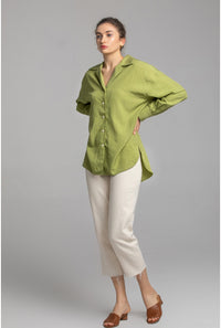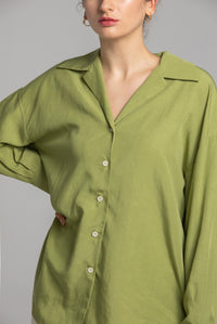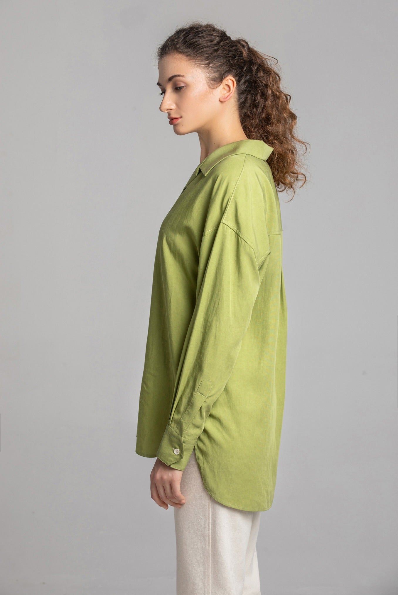 オーバーサイズ テンセルシャツ|Vネック ドロップショルダー