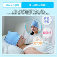 アイテムについて トップオープン設計でムレにくい。前後8mmの二重ジェルが“ながもち冷感”。冷やしてスッキリ、温めてじんわり——頭〜目元を360°包むリラックスキャップ。