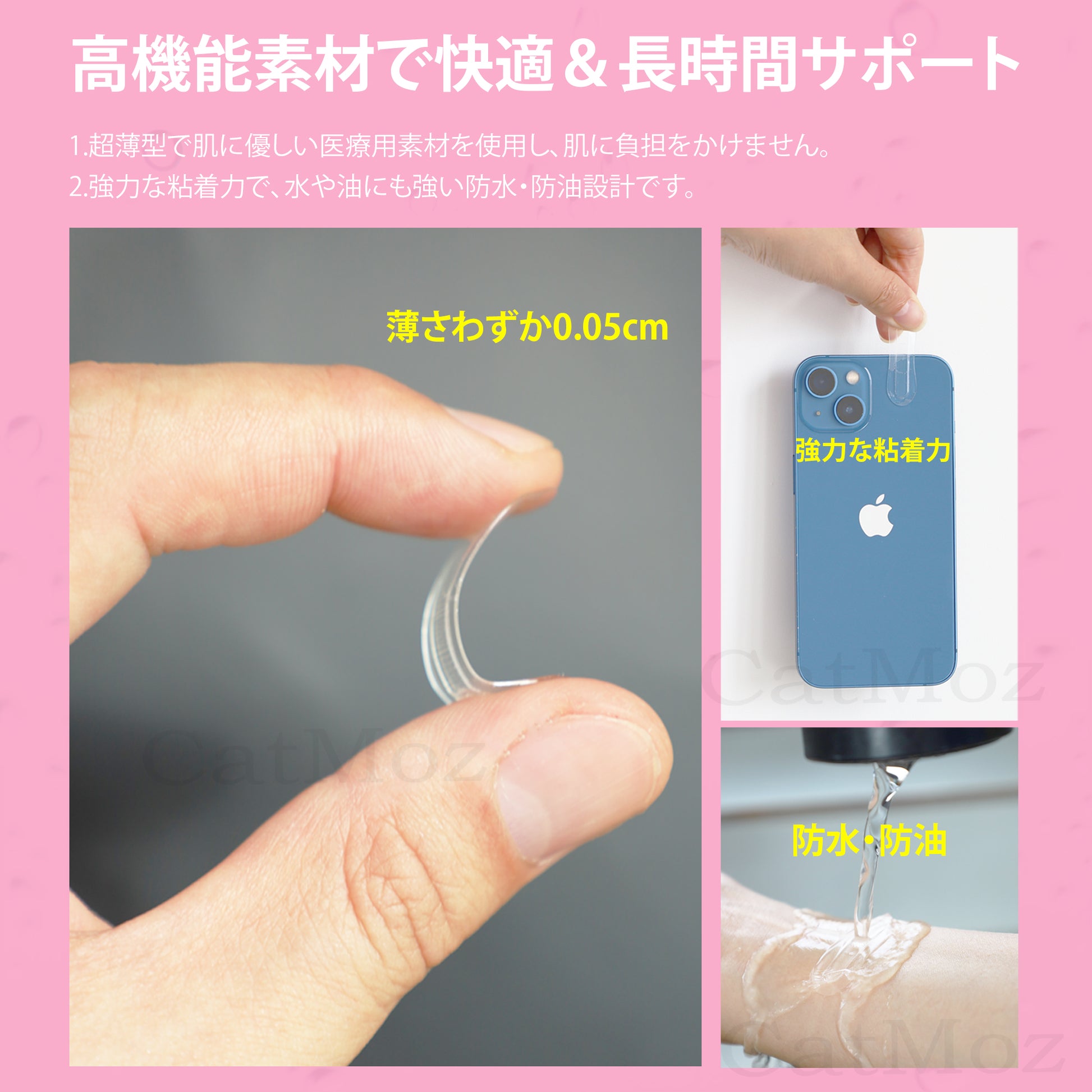 • 肌配慮:医療用素材で敏感肌にもやさしい